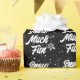 Texto "Muito divertido de neve" com flocos de neve brancos em preto