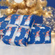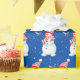 Homem de neve de férias com um pássaro em flocos de neve em um fundo azul. A cor de fundo pode ser alterada.