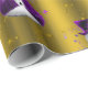 Um papel de embrulho de Natal em ouro, bonito e colorido, com um padrão de pequenos bonecos de neve vestidos com chapéus e coletes de veludo roxos, cercados por estrelas de ouro para dar um toque de presente nesta época de Natal, um toque brilhante e na moda.