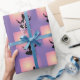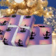 A moda e a silhueta refrescante de uma mulher a meditar num fundo roxo a amarelo.