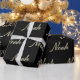 Sehr schönes edles personalisiertes Geschenkpapier im whitegold Lettering Look auf schwarz für Noah.