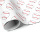 Este papel de empacotamento temático esportivo de beisebol apresenta um padrão repetitivo de baseball vermelho e branco. Clique em "Personalizar" para selecionar uma cor de fundo diferente.