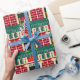 Papel De Presente Noel Christmas Fireplace Red Green Gold Crochet
