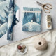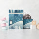 Uma cena de neve tranquila e tranquila com vários tons de blues e cinza que captam o silêncio das noites de inverno.