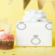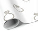 Papel de enrolamento com um padrão de anel de noivado de cinza prateada de alumínio que se repete sobre fundo branco. Perfeito para chás, casamentos e aniversários. Personalizável.