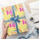 Aniversário embrulhando papel num arco-íris colorido com estrelas e design do céu amarelo. Personalize este artigo de aniversário de meninas com seu próprio nome e idade de 10 a 19 anos. Atualmente, lê Feliz Aniversário Kaitlyn 14 hoje. Perfeito para embrulhar um presente especial de 14. Desenvolvido exclusivamente pela Sarah Trett.