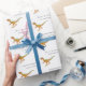 Papel de embrulho personalizado engraçado com nome de menino feliz aniversário Dinossauro velociraptor. Padrão assustadoramente divertido de Velociraptor dino Raptor com tipografia moderna branca Papel de presente.