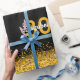 Elegante, clássico, glamouroso e feminino. Um arco de cor dourada, com brilho e brilho de ouro, um pouco de brilho e luxo para uma festa de aniversário de 30 anos. Fundo preto. Modelos para seu nome, 30 anos, data de nascimento e data de aniversário.