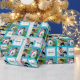 Azul-turquesa azul-aquático com o seu primeiro ou sobrenome, e monograma inicial com letra solteiro, adicione suas 3 fotos digitais favoritas a este embrulho de presente monograma personalizado, exclusivo e personalizado de fotomontagem de colagem! Crie seu próprio dom personalizado de fotos usando instantâneos da família, retratos infantis ou até imagens.