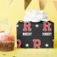 Elevem seu presente com papel embrulhado monograma! Esta modelo de na moda é personalizada com um monograma de solteiro e um nome. É perfeito para nomes individuais, sobrenomes familiares ou nomes de animais de estimação. Além disso, você pode alterar a cor 'plano de fundo' usando a opção 'Editar usando a ferramenta design'. Este padrão de tendência apresenta caracteres clássicos no estilo de bloco e motivos estelares que dão ao design um retrovisor antigo. Um modelo versátil que se adaptaria a muitas ocasiões diferentes, incluindo Natal, aniversários, formandos e muito mais! Este pacote de presente de estilo de vintage retrógrado é adequado para todas as idades, desde crianças e adolescentes à família e amigos! Disponível com um acabamento mate ou brilhante. Cores: vermelho, preto e branco.