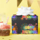 Esta vibrante e divertida design de papel embrulhado com tema de aniversário exibe a mensagem "FELIZ ANIVERSÁRIO, NICOLE", tendo um espectro colorido de arco-íris inspirado em um padrão de gradação, e um fogo de artifício celebratório, em constante explosão, inspiraram um padrão de fundo. Papel de embrulho vibrante como este pode ser usado no embrulho de presentes/presentes que estão sendo dados em comemoração do aniversário de alguém chamado Nicole. [~Z0000456]