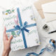 Este papel de embrulho de Natal personalizado apresenta um tema fofo de quebra-cabeças. Uma ilustração de uma árvore de Natal é ilustrada com pequenos presentes abaixo dela. Um soldado de brinquedo preguiçoso está de pé em um lado dele, com uma fada de ameixa de açúcar voando sobre ele. O Rei do Rato está impresso do outro lado. Pequenos flocos de neve caem ao redor da árvore. Uma saudação de exemplo é impressa acima da imagem, com um nome impresso abaixo em uma fonte branca e verde. Você pode personalizar o papel de empacotamento para incluir seu próprio nome personalizado ou texto.