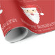 Este papel de empacotamento personalizável apresenta o desenho de Destei ilustrado padrão de boas cabeças do Papai Noel em uma cor vermelha de fundo. Em Papais noeis, lê-se "Feliz feriado!" junto com uma área de texto personalizável para escrever de quem é o presente, por exemplo.
