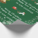 Papel de embrulho de Natal moderno, elegante e fofo, com a imagem de um monocromo puxando Papais noeis para trenó (cheio de presentes), o texto "Feliz Natal e Feliz ano novo 20XX" em escrita na moda / caligrafia e um nome personalizado. Com borrachas de flocos de neve brancos e prateados, e um par de sinos de Natal com um toque de holly, sobre um fundo verde de Natal. Certifique-se de personalizar o nome e o ano.