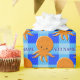 Um polvo de desenho laranja giro. Padrão de xadrez azul no fundo. Cilindros de papel para enrolação de animais bebês. Editar nome para personalizar. Desdecoração de festas e ideia de presentes para crianças.