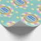 Este papel de embrulho de presente caprichoso apresenta um tema de Páscoa bonito e colorido sobre um fundo colorido com bolinhas amarelas. Um padrão de espiral colorido pastel borda o adesivo em tons de rosa, verde, azul e roxo sobre um fundo amarelo macio. O título "Selo Oficial de Coelhinhos da Páscoa" é impresso numa letra verde sobre uma faixa laranja, para se assemelhar a um selo oficial. O rótulo de Entrega Especial é impresso no centro, seguido de um nome de exemplo que você pode personalizar para incluir seu próprio nome personalizado ou texto.