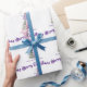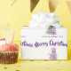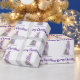 Este papel de embrulho personalizado glamouroso e festivo apresenta um tema de Natal Nutcracker. Uma imagem de um quebra-cabeça ilustrado é impressa no centro, em frente a uma árvore de Natal. A brilha falsa adiciona um toque de vírgula às ilustrações. A saudação "Feliz Natal" é impressa em uma fonte grande e roxa de script. Você pode personalizar o papel de empacotamento para incluir seu próprio nome ou outro texto personalizado.