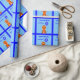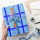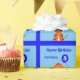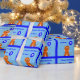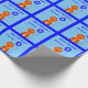 Personalize este papel de embrulho de tigre fofo, adicionando o nome da criança de aniversário, ou o nome do remetente, por exemplo, "Amor vovó". As cores azuis brilhantes são muito atraentes para as crianças, e elas certamente adoram este tigre sorridente com seu balão de 5. A saudação padrão é "Parabéns", mas você também pode mudar isso se quiser. O design com o título garante diretrizes fáceis para cortar o papel até o tamanho.