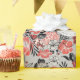 Este Papel de Embrulho de Bodas com Nomes Florais Modernos apresenta um padrão de flores vermelhas e pretas desenhadas à mão em um fundo taupe elegante, com flores de hortênsia, hibisco, jasmim e bignônia. Personalize com o título, nomes e data. Ideal para festas de noivado, chá de casal, casamentos ou qualquer comemoração romântica.