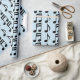 Este design apresenta linhas e colunas de notas musicais.
