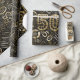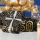 Esses grandes marcos de aniversário merecem ser comemorados com algo um pouco especial, como estes designs especiais de papel embrulho. Este, por 50 anos, apresenta o número 50 em uma seleção de fontes legal junto com o texto "Parabéns". Disponível em vários esquemas de cores diferentes, este exemplo é tons de ouro na sua escolha de qualquer cor de fundo (mostrada aqui em preto apenas como exemplo). Procure ID270 para ver outras idades e cores adicionais para este design.
