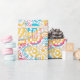 Esses grandes marcos de aniversário merecem ser comemorados com algo um pouco especial, como estes designs especiais de papel embrulho. Este, por vinte anos, apresenta o número 20 em uma seleção de fontes legal junto com o texto "Parabéns". Disponível em vários esquemas de cores diferentes, este exemplo é uma mistura de cores brilhantes e alegres, da turquesa ao amarelo ouro, na sua escolha de qualquer cor de fundo (mostrada aqui em branco apenas como exemplo). Procure ID270 para ver outras idades e cores adicionais para este design.