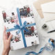Todos os personagens de Natal favoritos estão aqui neste papel de embrulho, coloridos em lata. Papais noeis, bonecos de neve com chapéus de topo e um pinguim.