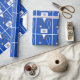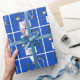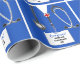 Creative nurse graduation gift wrap featuring royal blue hospital scrubs and stethoscope illustration. To personalize edit text to add name of nurse.