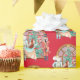 Belo papel de embrulho de presente, apresentando um design de estilo aquoso de uma bailarina dançante, Nutcracker e Mouse King em frente a uma árvore de natal! A cor de fundo é um lindo vermelho de Natal! Um belo presente para seu presente especial de Natal!