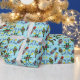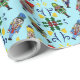 A cute and colorful pattern of nutcrackers, mistletoes, and bells with a baby blue background.