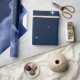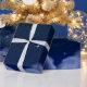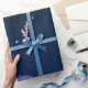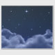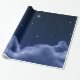Papel de envolvimento com as nuvens azuis brilhantes que incandescem contra um fundo escuro do céu. Inclui muitas estrelas minúsculas do twinkling e uma estrela central do foco. Excelente para envolver um presente para um fã ou alguém do espaço que apenas amem a estrela que olha. Igualmente faz o envolvimento bonito para caixas ou dobradores.
