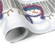Puffy, o boneco de neve está preparado para a primeira queda de neve da temporada de inverno. Ele está escondido em seu chapéu colorido e fofo e cachecol.