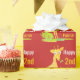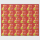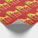 Papel de envolvimento animal personalizado da aguarela do girafa do feliz aniversario dos miúdos. Fundo vermelho brilhante com um teste padrão de repetição de girafas do divertimento. Girafas do estilo da aguarela em amarelo e laranja atrás dos arbustos verdes. Personalize na pia batismal branca e amarela do divertimento para dizer o FELIZ ANIVERSARIO com nome e idade do menino ou da menina do aniversário.