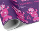 O feliz aniversario caçoa o papel de envolvimento bonito do teste padrão cor-de-rosa e roxo do robô. Robô magenta parvo do rosa quente no fundo roxo escuro. Personalize com nome e idade da criança para sua festa de aniversário. Divertimento para partidos temáticos do robô e amantes do robô. O fundo pode ser mudado ao branco ou ao preto. Robôs femininos bonitos em cores femininos do divertimento.