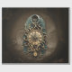 O misterioso movimento steampunk. Um fascinante relógio steampunk que se cativa com sua única combinação de estética mecânica e elementos fantásticos. O disco central é cercado por uma coroa de tentáculos de ouro desenhada de forma artística que elegantemente se curvam para fora, dando ao relógio design um toque vibrante, quase orgânico. Esses tentáculos se destacam claramente da armação, que é um azul-esverdeado profundo com sotaques dourados, criando um sofisticado contraste ao ouro quente dos tentáculos.