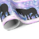 O unicórnio místico escapou a todos por séculos, quase toda cultura tem fotos e desenhos dessa criatura lendária. Agora você pode ter seu próprio e lindo unicórnio em seus produtos favoritos para mostrar a todos seus amigos! Uma bela silhueta de um unicórnio negro sobre um fundo roxo/azul com uma lua suave e flocos de neve caindo lentamente para o chão. Um papel de empacotamento de feriado para o seu amante de unicórnio.