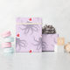 Papel de embrulho com um padrão de Natal inovador de ilustrações sorridentes, roxas, de polvos vestindo chapéus de Santa num fundo roxo leve.