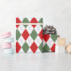 Este clássico papel de embrulho de Natal apresenta um elegante padrão de estilo argyle com diamantes vermelhos e verdes e linhas pontilhadas a azul marinho.
