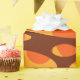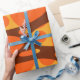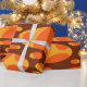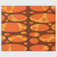 Este design de papel de embalagem tem duas camadas de ovais em um campo de amarelo, marrom e laranja.