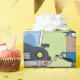 Um policial no estilo cartoon, parado do lado de fora do carro da polícia. Este design parece realmente eficaz nestes papéis de enrolamento