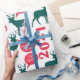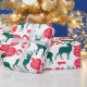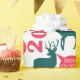 Este papel de embrulho de Natal apresenta uma design de silhueta verde e vermelha divertida de renas.