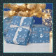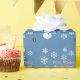 Uma fatia de Life and Delight apresenta Hello, Winter Wonderland embrulhando papel com um boneco de neve decorado com flocos de neve brancos, escrevendo rosa e um pano de fundo azul. O boneco de neve também tem um chapéu azul e cachecol.