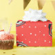 Óculos pretos com olhos e pestanas em bolinhas brancas e fundo vermelho. O plano de fundo pode ser alterado.