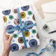Fique de olho naqueles presentes! Design de "apanhador de olhos" divertido é um padrão de globos oculares sem piscar com riscas azuis, castanhas, verdes, douradas e cinzas, além de um "mau eye" com um aluno vermelho e veias com sangue. Design incrível para um optometrista ou outro oftalmologista!