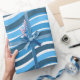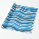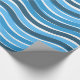 Sombras de linhas onduladas azuis e brancas padrão de papel personalizado de empacotamento com estilo retrô divertido.