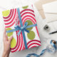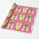 Este papel de embrulho tem um design moderno do século médio de ondas de amora e círculos verdes.