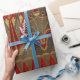 Papel De Presente Oral Egípcio Regal e Motif Vermelho Dourado Geomét