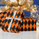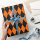 Papel De Presente Orange Black Harlequin Diamonds Checkers Design