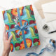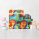 com design de arte original de pintura aquosa feita pelo artista Sacha Grossel, de foco próximo, grande estilo macro, flor laranja brilhante Canna Lily contra fundo verde. Este design colorido é inspirado pela arte botânica e influenciado pelo estilo dos trabalhos de arte florais abstrato do Georgia O'Keeffe. As cores são intensas e elevatórias e adequadas para amantes de flores e cores em todo lugar.