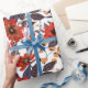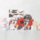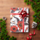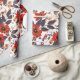 Orange-red flowers and green leaves in a seamless pattern over a white background-